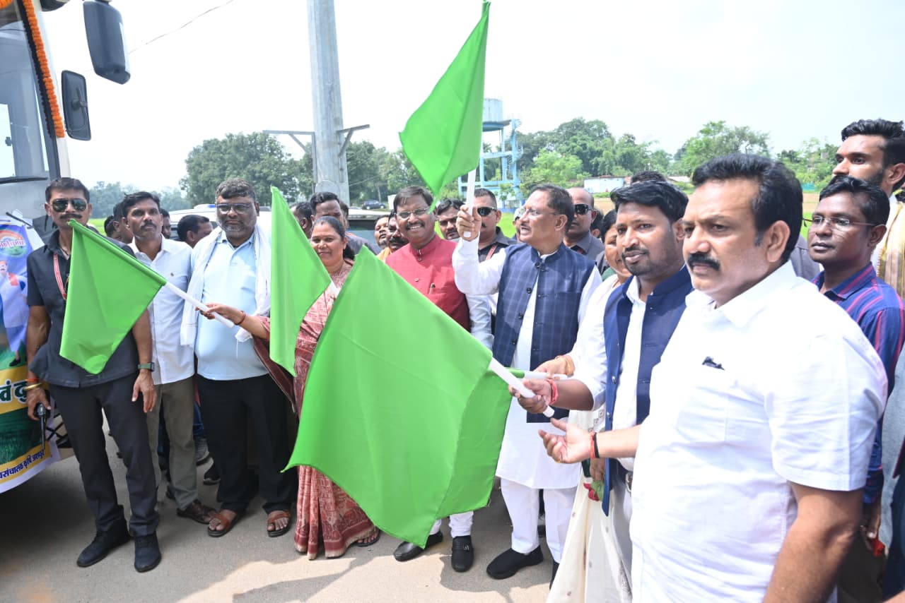 To encourage innovative farming and agricultural development, the Chief Minister flagged off a group of 35 farmers from Kunkuri (15) and Kansabel (20) for an educational tour to Raipur and Durg under the Krishi Kranti and ATMA schemes. During the tour, farmers will learn about scientific farming techniques and food processing. Institutions like BNR Seed Raipur and Indus Mega Food Park Raipur will provide training and exposure to the participants, which they can later implement in their own fields.