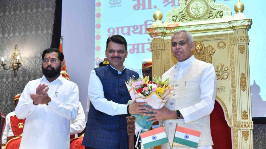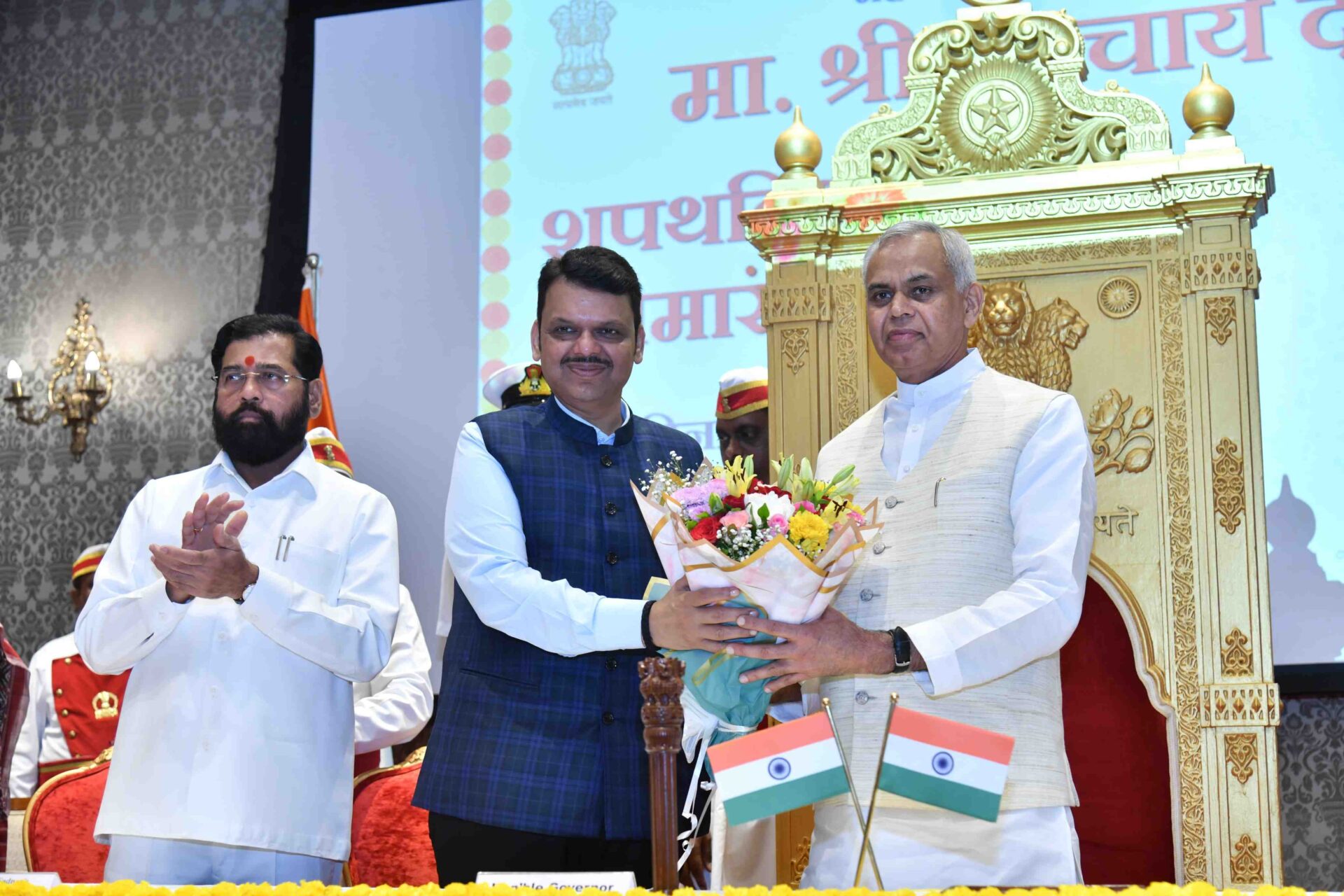 After the oath ceremony, Chief Minister Devendra Fadnavis and Deputy Chief Minister Eknath Shinde congratulated Governor Devvrat by presenting him with a bouquet. Acharya Devvrat is the 22nd Governor of Maharashtra.