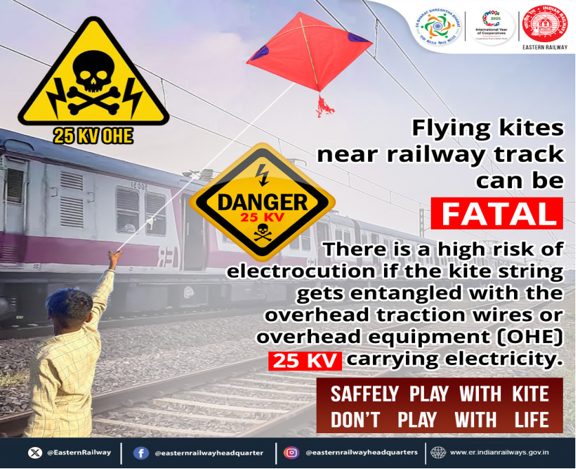 Eastern Railways urges larger section of the society in refraining from flying kites near railway tracks.