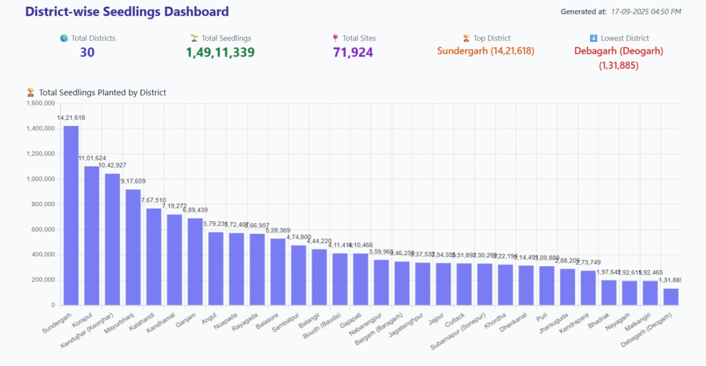 Around 1.5 Crore Saplings Planted in Just 12 Hours: Odisha Breaks Records, Sets New Global Benchmark Sundergarh tops the chart with over 14 lakh saplings