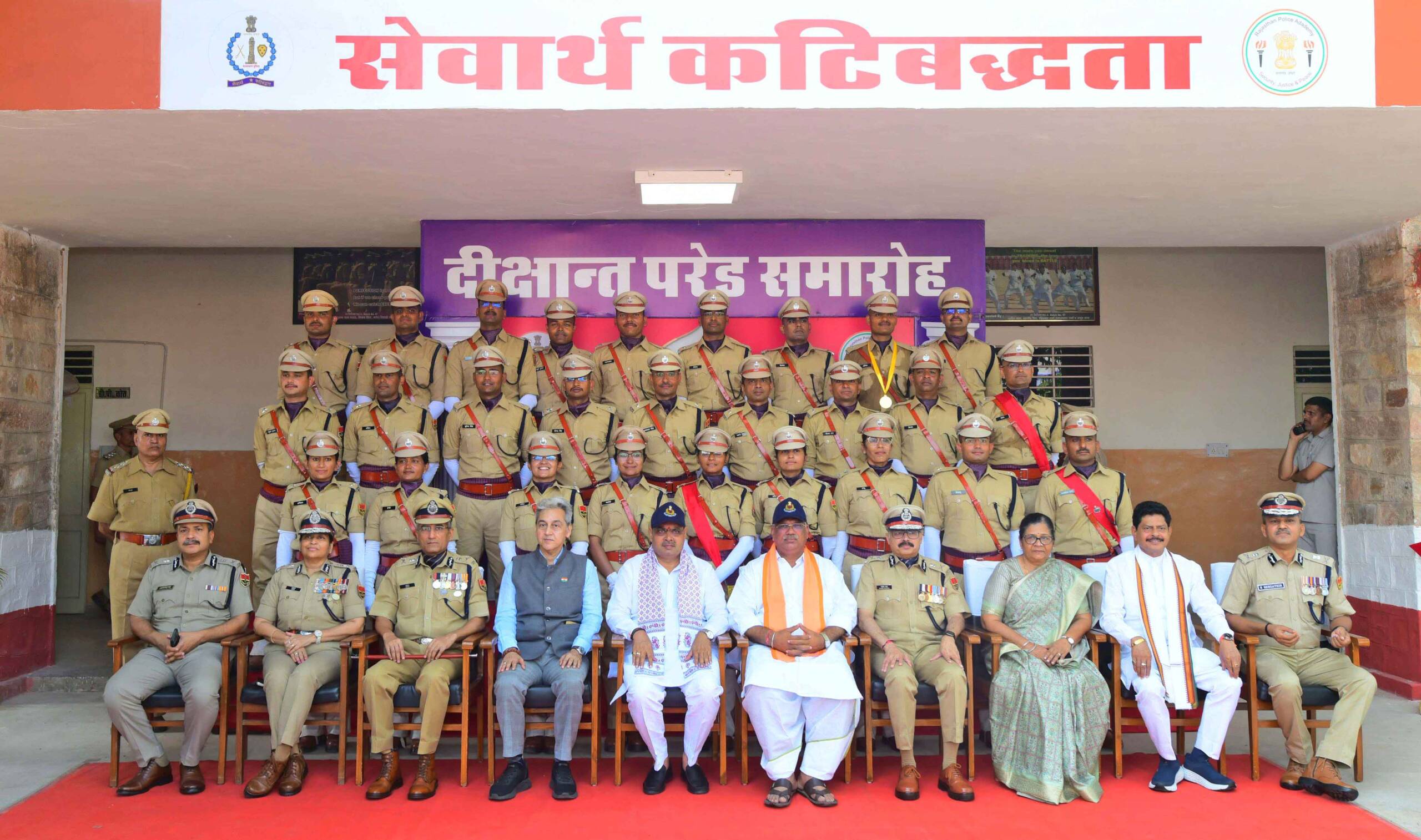 The ceremony was attended by Minister of State for Home Shri Jawahar Singh Bedham, MP Smt. Manju Sharma, MLA Shri Gopal Sharma, Chief Secretary Shri Sudhansh Pant, RPA Director Shri S. Sengathir, and senior officers of the police department.