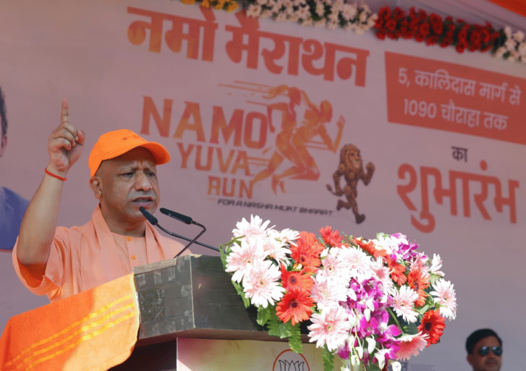Lucknow, Sept 2025 : Prime Minister Narendra Modi has given GST reform as a Diwali gift to every citizen of the country and the state. On one hand, huge exemptions have been given on essential items like educational material for students, milk, curd, ghee, paneer, and food items, while on the other hand, heavy taxes have been imposed on drugs and extravagance. To give wings to the dreams of youth, exemptions have also been given on bikes, cars, houses, and items used in houses like steel and cement. This announcement was made by the GST Council on September 3, which is being implemented across the country from September 22. On Vijayadashami, in every village, every town, and every district, the youth will have to burn effigies of sin, atrocities, corruption, injustice, and drugs. These things were said by Chief Minister Yogi Adityanath while inaugurating the Namo Youth Run for a drug-free India at his residence on Sunday. The Namo Marathon started from Kalidas Marg and went up to 1090 intersection. On this occasion, Chief Minister Yogi Adityanath encouraged the youth with chants of “Bharat Mata Ki Jai.”
