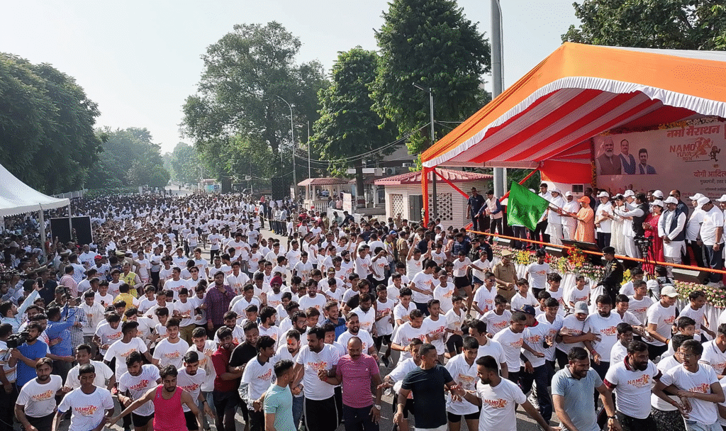CM Yogi said that on the occasion of “Azadi Ka Amrit Mahotsav,” the Prime Minister had called upon the countrymen to take a pledge of “Developed India” and to move forward with the Panch Pran. He had said that traces of slavery have to be eliminated, our heritage has to be respected, there must be respect for the army and uniformed forces, work has to be done for building social equality, and citizens must sincerely fulfill their civic duties. These Panch Pran will make Indians the charioteers of the journey of a developed India. He said that with this inspiration of the Prime Minister, Uttar Pradesh decided to move forward with the “Developed India–Developed Uttar Pradesh” campaign. The campaign is receiving immense support from the youth, farmers, laborers, traders, and intellectuals of the state. Every person is ready to contribute in their field. Describing self-reliance as the key to development, he said that a self-reliant society is built only from a healthy society, and events like the “Namo Marathon” give new direction to society. After 2014, the Prime Minister accelerated several campaigns related to health and youth welfare in the country. International recognition was given to World Yoga Day, and campaigns like “Khelo India,” “Fit India Movement,” and “MP Sports Competitions” inspired the youth. Along with this, opportunities were ensured for the youth through “Mission Rojgar.” Today, the same youth power is connecting with “Namo Marathon” under Seva Pakhwada.