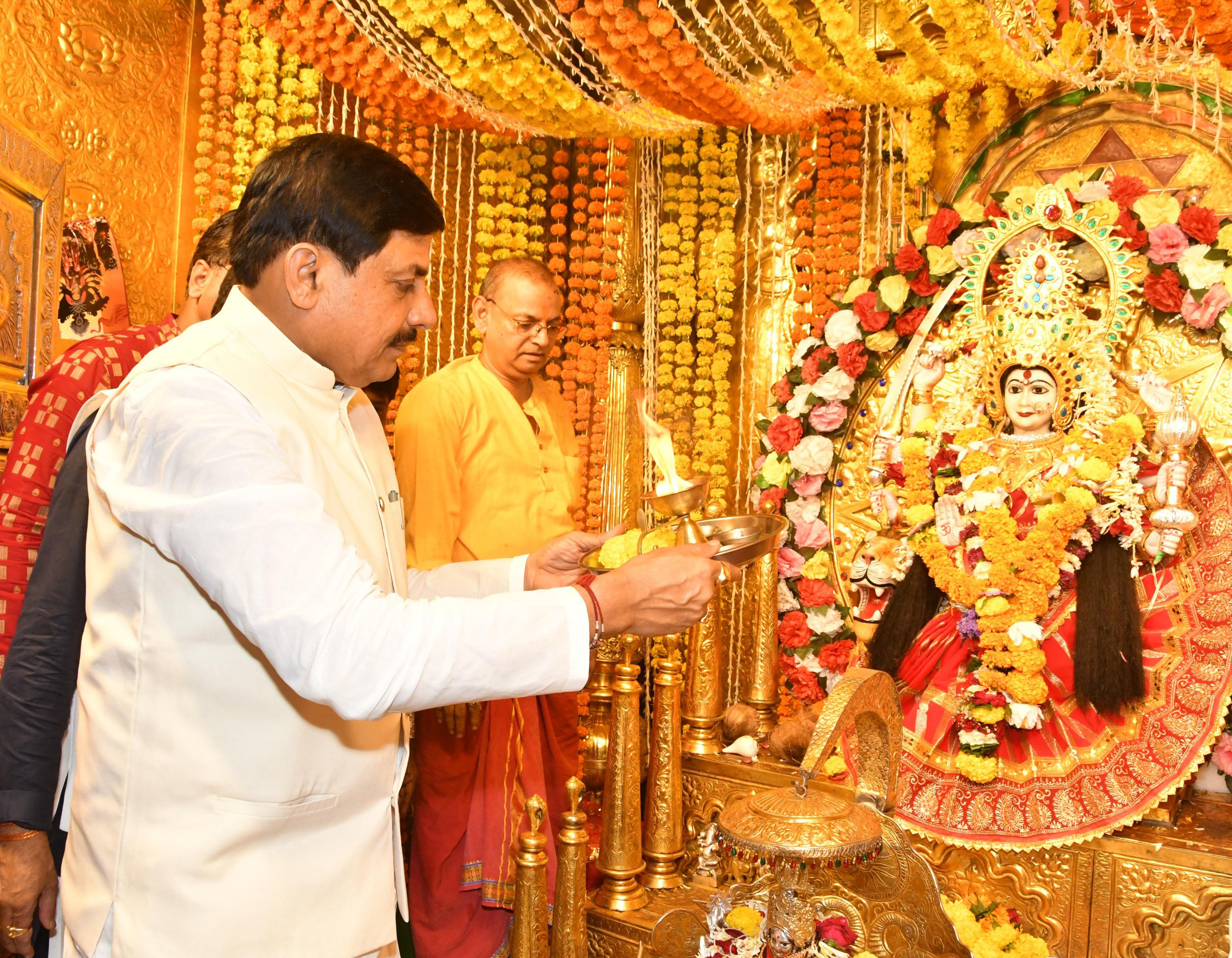 Dr. Yadav began his Chowk Bazaar visit with a darshan and puja at the Curfew Wali Mata Temple, on the occasion of Ghatasthapana marking the start of Sharadiya Navratri. He performed Kanya Pujan, seeking blessings from young girls considered to be representations of the goddess.