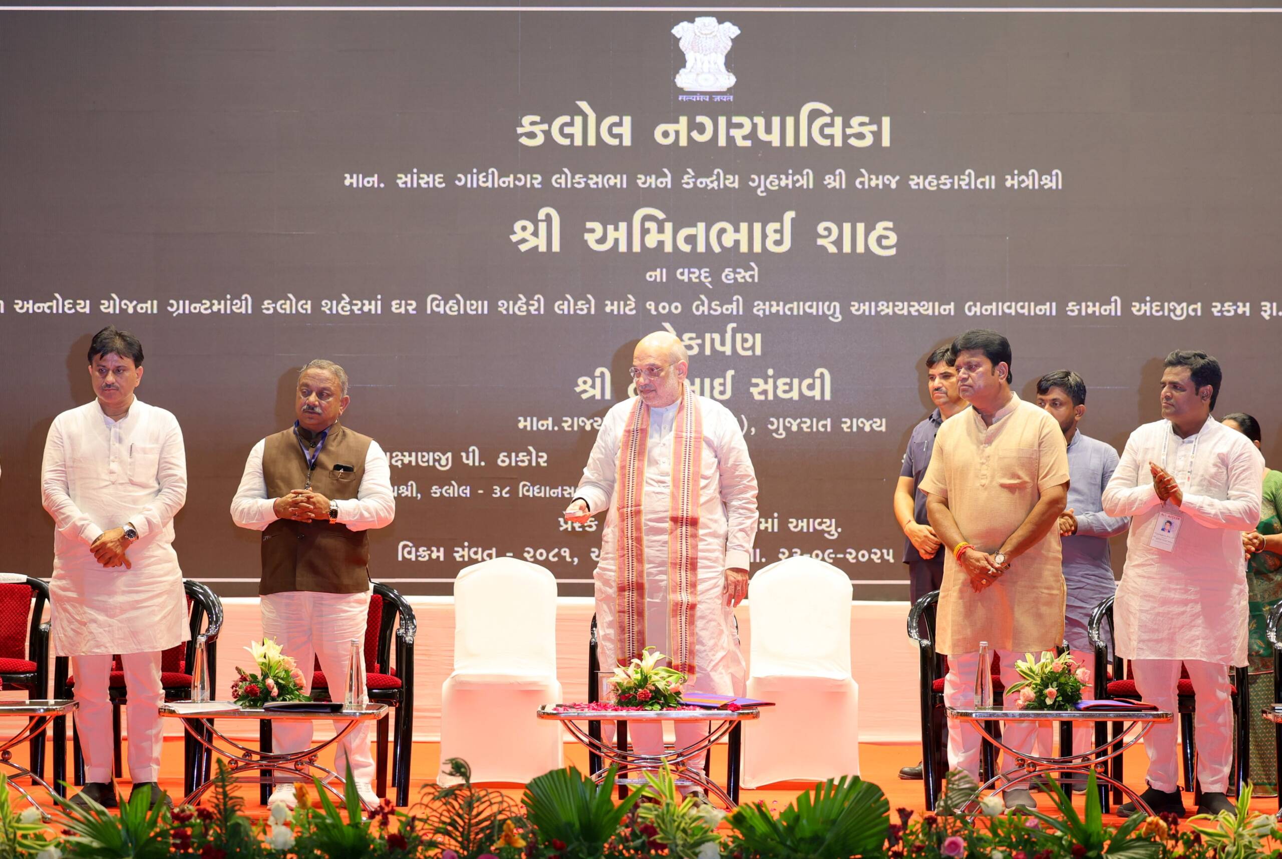 Addressing the program, Union Home Minister Shri Amit Shah said that in the last five to six years, Kalol has witnessed unprecedented development. In the next 10 years, Kalol has immense potential for development. Several development projects have already been initiated here. Five schemes worth approximately ₹53 crore have been inaugurated, including a water treatment plant costing ₹35 crore, the construction of Jyoteshwar Lake at ₹11 crore, and a night shelter. Additionally, sanitation equipment and various borewell projects have been completed and dedicated today. Furthermore, several other projects worth ₹91 crore have been started under the Swarnim Jayanti Mukhyamantri Vikas Yojana and AUDA grants.