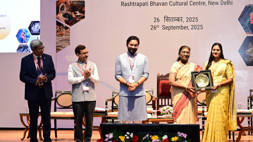 The President said the role of geoscientists isn’t limited to mining. The impact of mining on geo-environmental sustainability also needs to be addressed by them. Technology needs to be developed and deployed to add value to mineral products and minimize wastage. This is crucial for sustainable mineral development. She was happy to note that the Ministry of Mines is committed to sustainability and innovation and is promoting AI, machine learning, and drone-based surveys in the mining industry. She also appreciated the steps taken by the Ministry for the recovery of valuable elements from mine tailings.