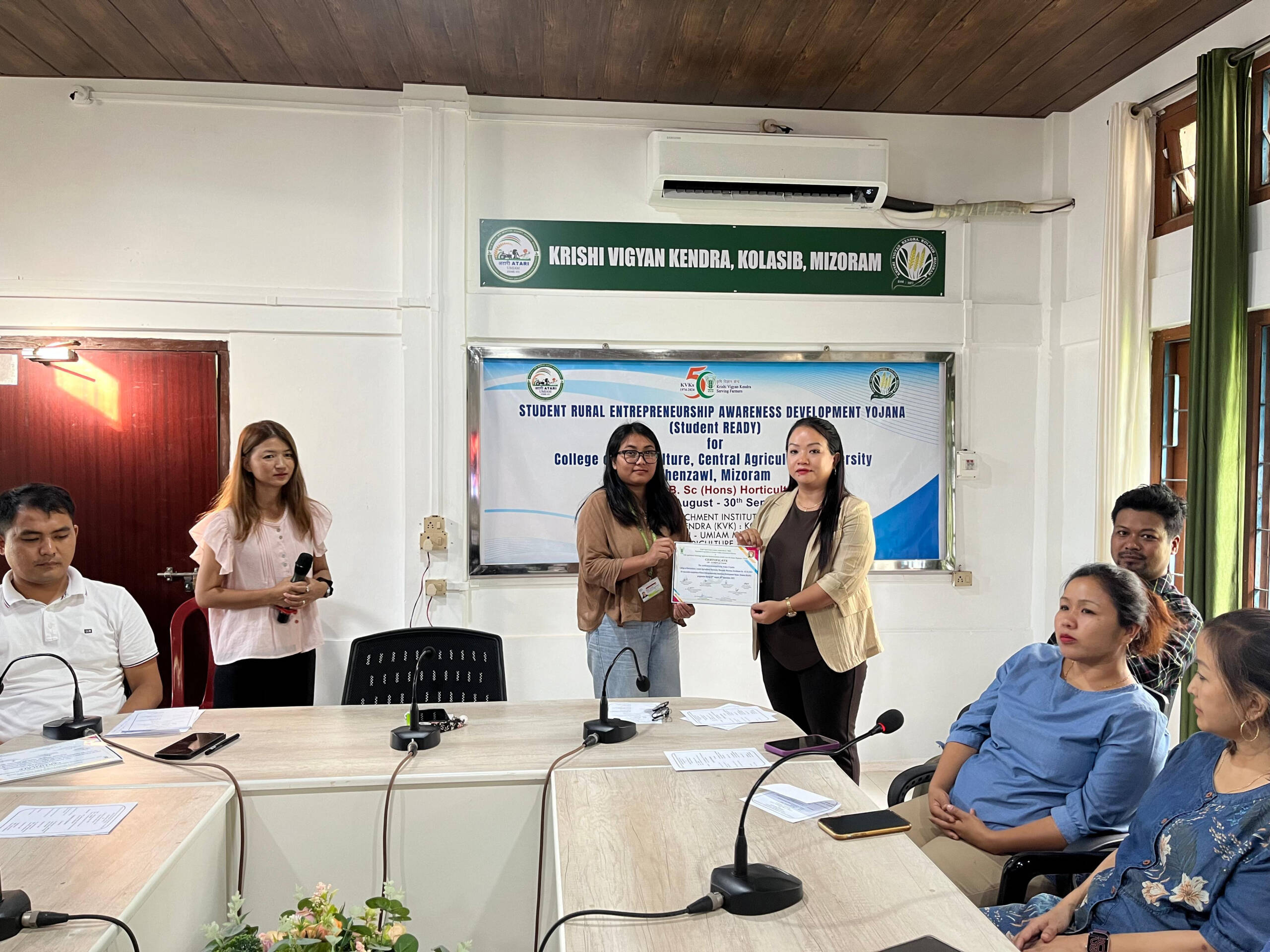 Kolasib, Sept 2025: Final-year Bachelor of Science (Horticulture) students from the College of Horticulture, Thenzawl, under the Central Agricultural University, Imphal, Manipur, undertook the Rural Entrepreneurship Awareness Development Yojana (READY) internship programme at Krishi Vigyan Kendra (KVK), Kolasib, from 18 August to 30 September 2025. Today, the valedictory and certificate distribution programme was held at the KVK Kolasib Conference Hall.