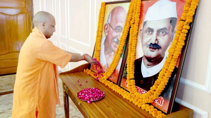 Gorakhpur, Oct 2025 : On the birth anniversaries of the Father of the Nation, Mahatma Gandhi, and former Prime Minister Lal Bahadur Shastri, Chief Minister Yogi Adityanath paid heartfelt tributes to both leaders on Thursday. After offering floral tributes to their portraits at the Gorakhnath Temple, the Chief Minister recalled their invaluable contributions to the nation and expressed his gratitude, stating that the double-engine government is working to realize the dreams of Bapu and Shastriji.