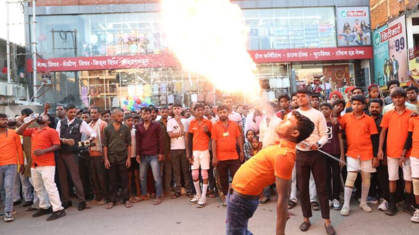 Children of Shri Shri Hanuman Dal captivated the crowd with their daring stunts, drawing thunderous applause. Devotees lined both sides of the route, eager for a glimpse of their revered Peethadhishwar. Adding a vibrant cultural flavour, ten folk troupes organised by the Culture Department staged performances at various points along the procession path, showcasing the rich traditions of the region.