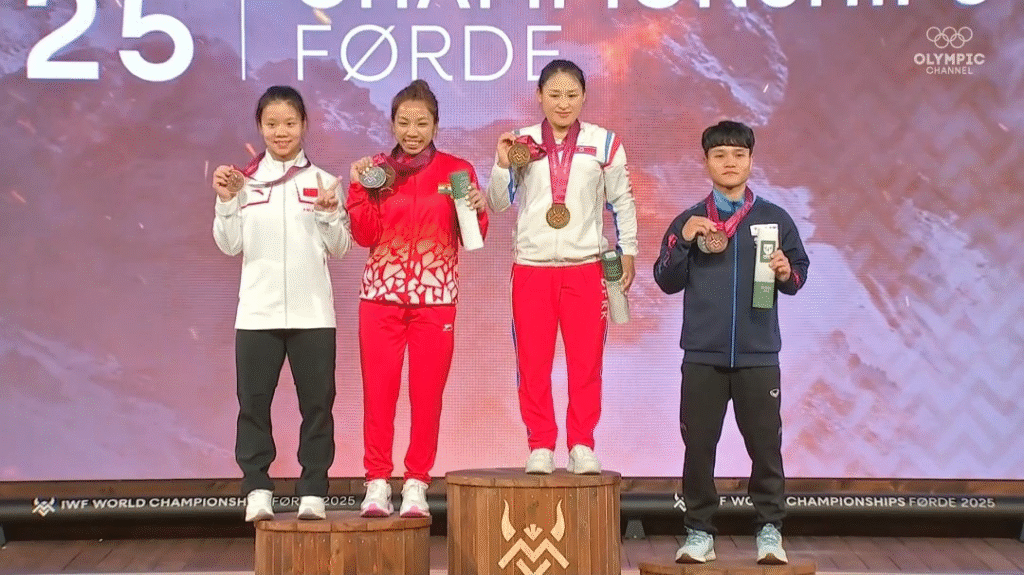 North Korea’s Ri Song Gum dominated the field, winning gold with a remarkable 213kg total (91kg snatch, 122kg clean and jerk), setting new world records in both total and clean and jerk. Thailand’s Thanyathon Sukcharoen took the bronze with a 198kg total (88kg snatch, 110kg clean and jerk).