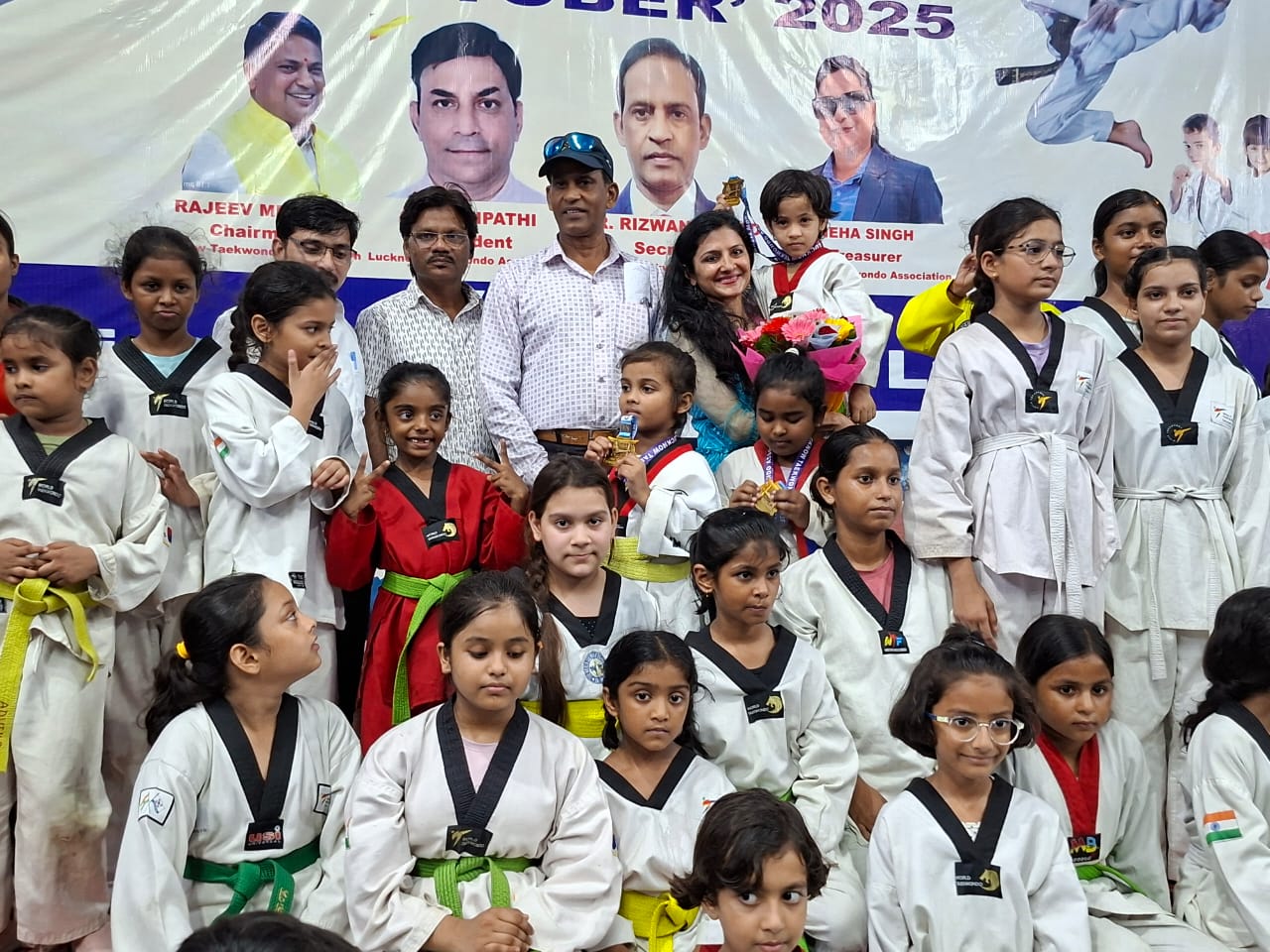 Lucknow Oct 2025 : Under Mission Shakti 5.0, an Open Inter-District Taekwondo Championship was organized today at K.D. Singh Babu Stadium, Lucknow, where 200 girl students from across Uttar Pradesh showcased their talent, determination, and strength through outstanding performances.