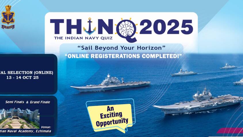 The Indian Navy Quiz – THINQ 2025 has successfully concluded its Elimination Rounds with 166 teams across the country advancing to the Zonal Selections scheduled on 13 and 14 Oct 2025. The Semi-Finals and Grand Finale, are scheduled to be hosted at the Indian Naval Academy (INA), Ezhimala, in early Nov 2025.