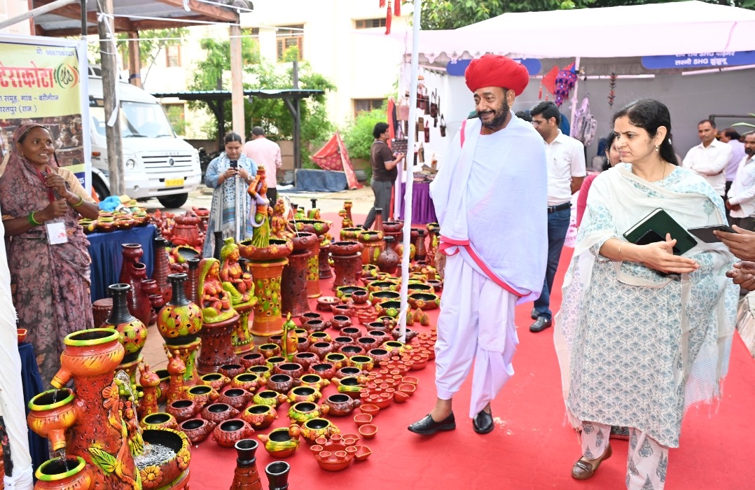 On the same day, the Hon’ble Minister of State for Rural Development and Panchayati Raj Department, Government of Rajasthan, Mr. Otaram Dewasi, also visited the mela. He toured various stalls, appreciated the products created by SHG women, and stated that the mela is playing a vital role in providing a marketing platform to rural women, thereby contributing significantly to their journey towards self-reliance.