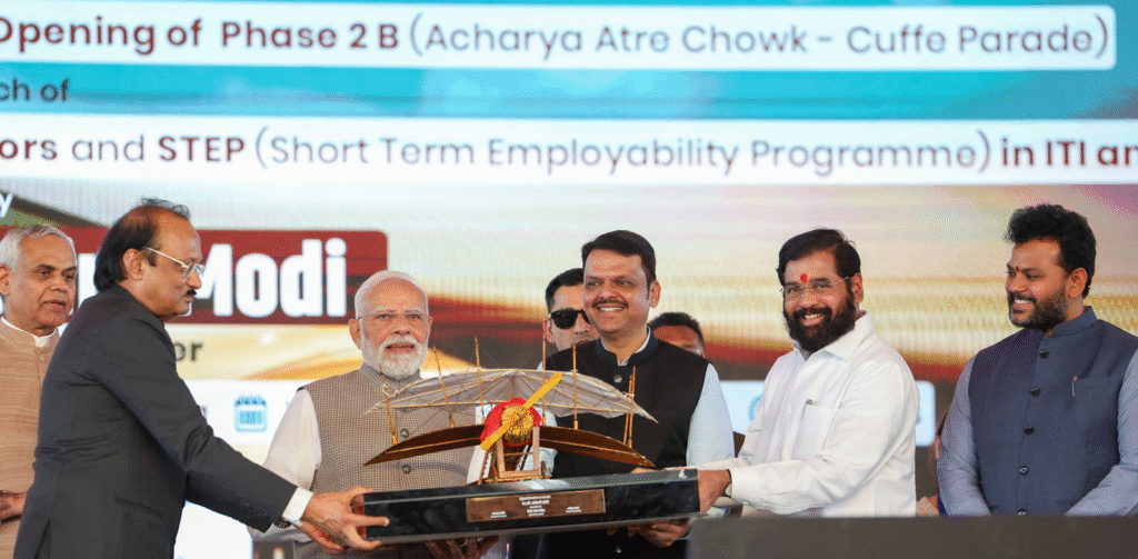 Prime Minister inaugurated Phase 2B of the Mumbai Metro Line-3, stretching from Acharya Atre Chowk to Cuffe Parade, constructed at an estimated cost of around Rs. 12,200 crore. With this, he will dedicate the entire Mumbai Metro Line 3 (Aqua Line) — to the nation with a total cost of over Rs. 37,270 crore, marking a major milestone in the city’s urban transport transformation.