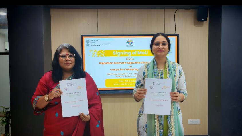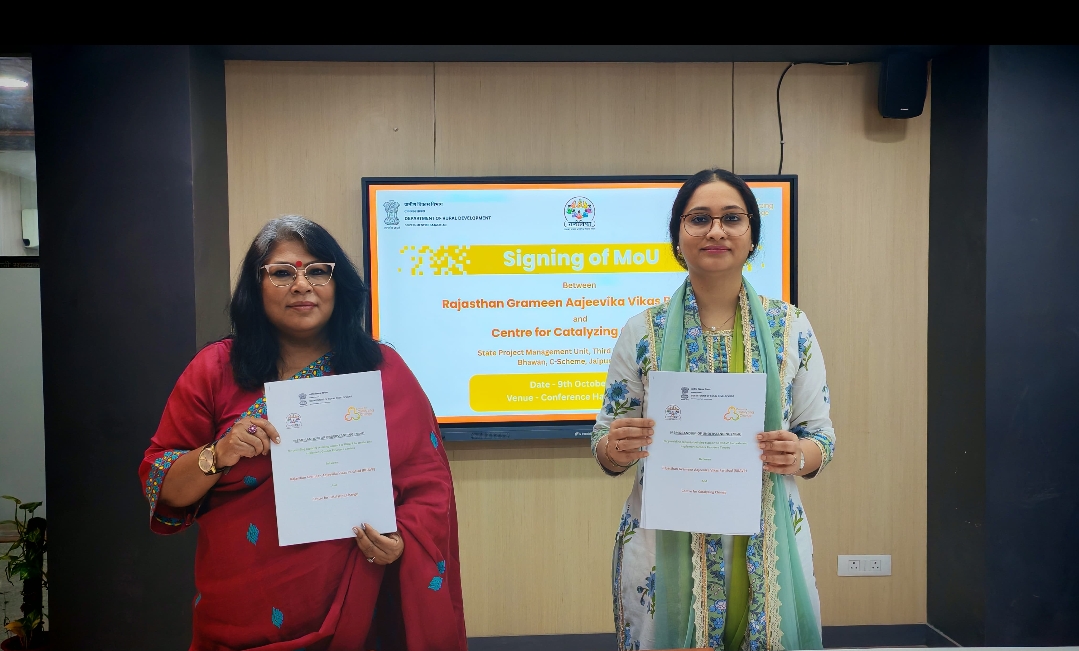 Jaipur, Oct 2025 : A significant Memorandum of Understanding (MoU) was signed on Thursday between the Rajasthan Grameen Aajeevika Vikas Parishad (Rajeevika) and the Centre for Catalyzing Change (C3). The purpose of this partnership is to strengthen gender integration and reinforce institutional mechanisms under the Deendayal Antyodaya Yojana – National Rural Livelihoods Mission (DAY–NRLM) in Rajasthan.