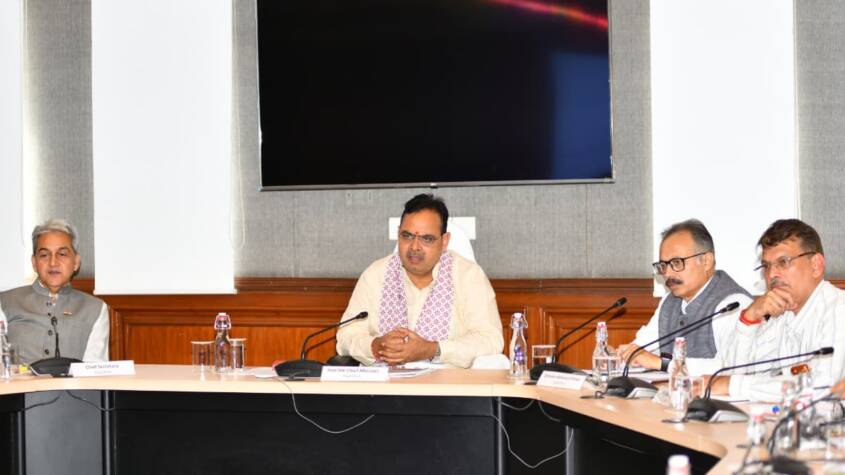 The meeting was attended by Chief Secretary Shri Sudhansh Pant, Director General of Police Shri Rajeev Kumar Sharma, and senior officials from various departments.