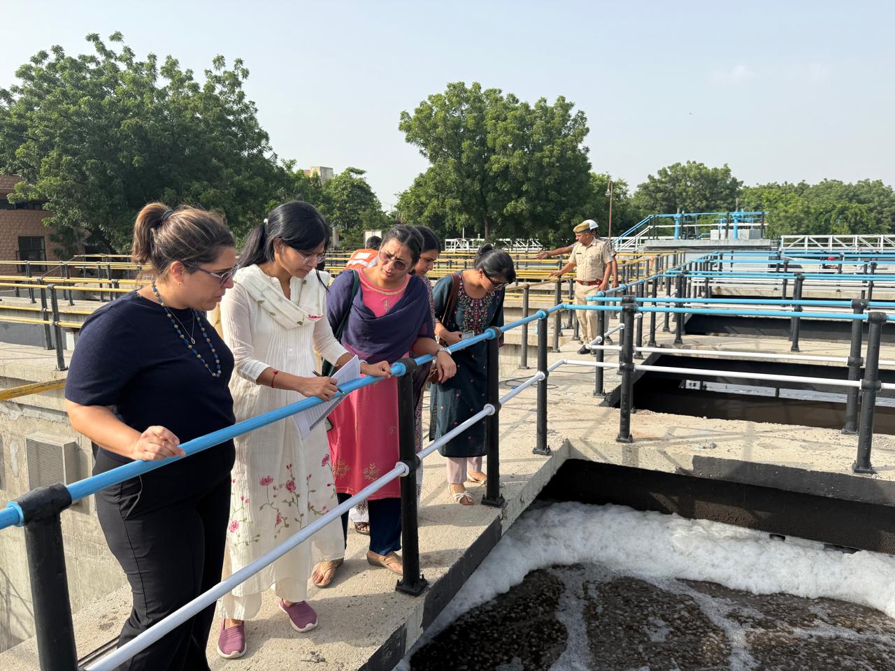 Following the meeting, the delegation visited the Salawas STP, where Ms. Kamini Songra, Regional Officer of the Rajasthan Pollution Control Board, and Mr. Pawan Kumar explained the plant’s functioning and detailed the quality of treated water.