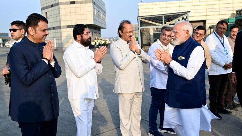 Mumbai, Oct 2025 : Prime Minister Narendra Modi departed for Delhi by plane from Chhatrapati Shivaji Maharaj International Airport at 5:15 PM.