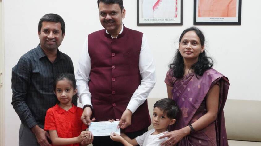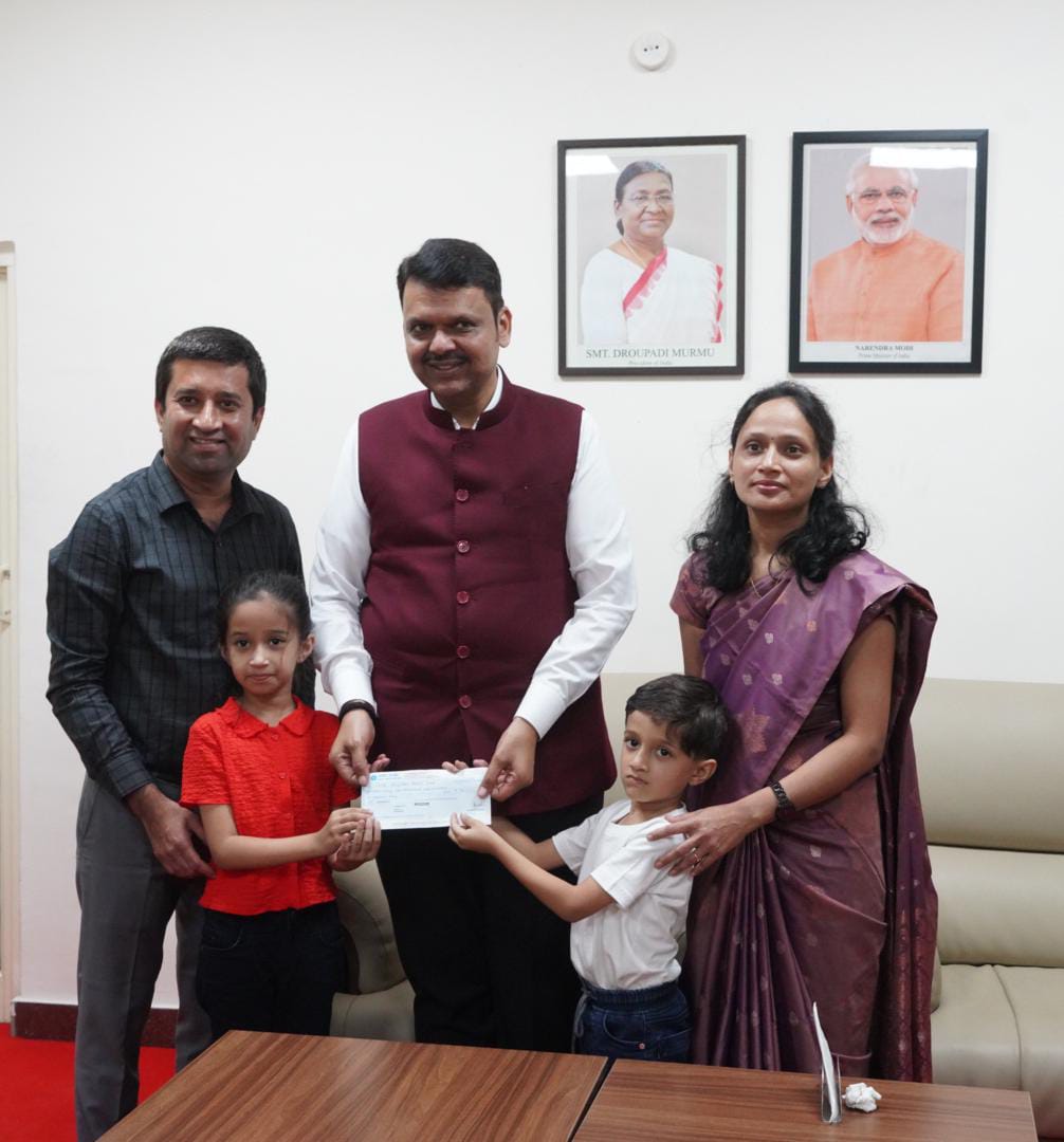 Chief Minister Fadnavis appreciated the noble gesture of the Girase and Alai families for their contribution. Present on the occasion were Revenue Minister Chandrashekhar Bawankule; Dr. Girase’s wife Shubhangi Girase and their children Advaika and Kiyansh; as well as Mayur Alai’s wife Priyanka Alai and their children Aarohi and Aarav.
