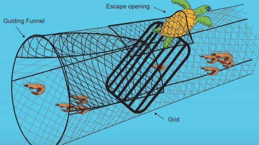 A Turtle Excluder Device (TED) is a specialised mechanism fitted into shrimp trawl nets that allows sea turtles and other large marine animals to escape while retaining shrimp.