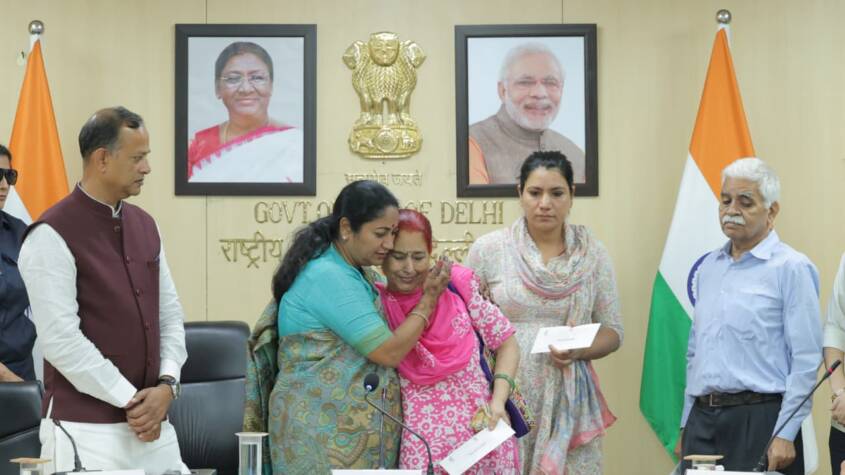 The families of the following deceased employees received the ex gratia cheques, V. Nangthanlian (Department of Trade and Taxes), Raj Bala Garg (GTB Hospital), Babita (CBPACS), Rohan Joshi (MCD), Dr Ravinder Kumar Goel (DGHS), Aniyamma Reji (MAMC), Biswajit Das (DTC), Rajesh Kumar (Department of Education), Dr Naveen Ram (BSF), Dr Vijay Singh Rajan (BSF), and Arun Sood (DHS). The Chief Minister said that the dedication and spirit of service shown by these personnel would forever be remembered as one of the most shining chapters in Delhi’s history.