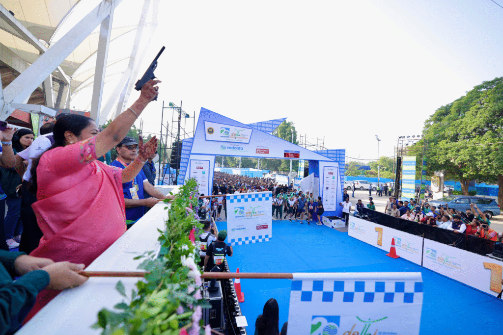 New Delhi, Oct 2025 : Delhi Chief Minister Mrs. Rekha Gupta flagged off the Vedanta Half Marathon this morning and said that fitness and sports have now become an integral part of the lifestyle of Delhiites. Expressing happiness over the increasing participation of women in this marathon, the Chief Minister described it as a positive sign of growing awareness and equal opportunities in society.