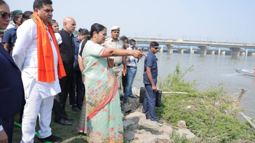 New Delhi, Oct 2025 : Delhi Chief Minister Mrs. Rekha Gupta today inspected the preparations being carried out at Kalindi Kunj (Madanpur Khadar) area for cleaning the Yamuna river and controlling froth formation. The Chief Minister also reviewed the report from the on-site laboratory testing the river’s water and expressed satisfaction over the quality of Yamuna water. This laboratory operates under the Treatment Plant and Quality Control Wing of the Delhi Jal Board.
