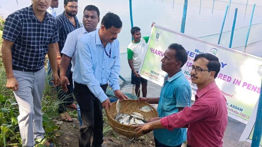 ICAR-CIFRI demonstrates successful Pen Culture of Olive Barb in Tamranga Beel, Bongaigaon, Assam.