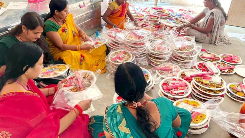 Members of the “Jai Maa Ambe” SHG of Rajpur and “Jyoti” SHG of Balrampur, each consisting of 10 women, have been working tirelessly day and night to make the lamps.
