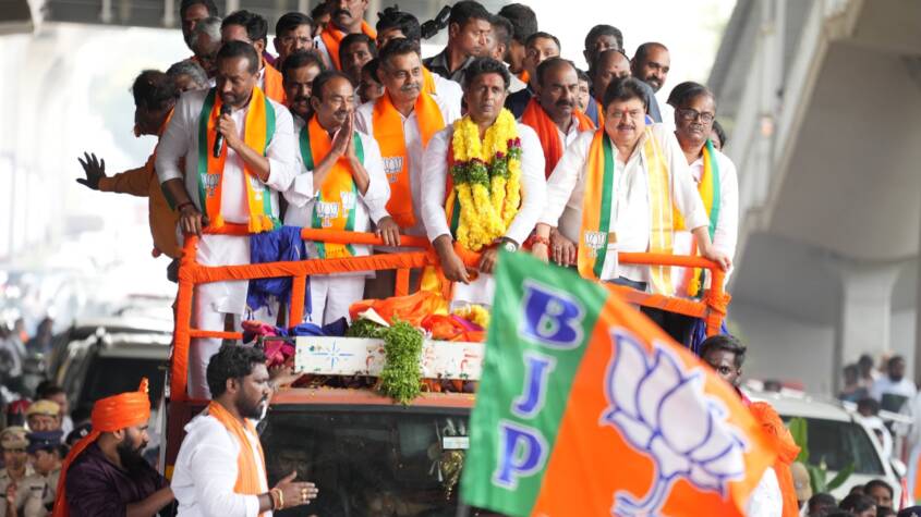 A large number of BJP workers, waving party flags and raising slogans, marched through different parts of the Jubilee Hills constituency before reaching the MRO office. The rally reflected the party’s determination to strengthen its presence in Hyderabad’s key urban constituency.