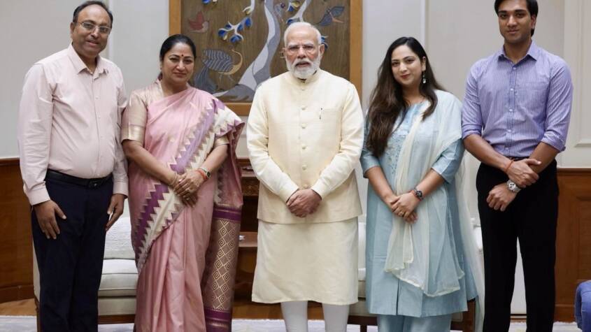 New Delhi, Oct 2025 : Delhi Chief Minister Rekha Gupta today paid a courtesy visit to Prime Minister Narendra Modi along with her family and received his blessings. The meeting was cordial and productive, during which she briefed the Prime Minister on Delhi’s development, the Clean Yamuna campaign, and Chhath festival preparations. She added that under Prime Minister Modi’s guidance, the capital is rapidly progressing towards becoming a ‘Viksit Delhi’.