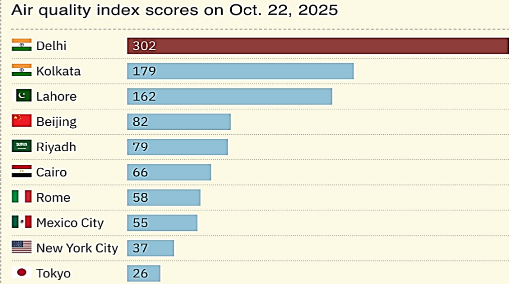 Air pollution in New Delhi hit a five-year high this week, followed next is Kolkata.