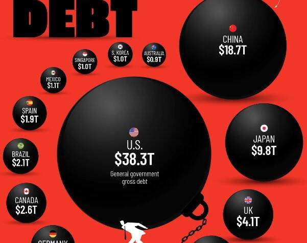 Oct 2025 : Global government debt has reached $110.9 trillion in 2025, but which countries are the ones with the most of it?