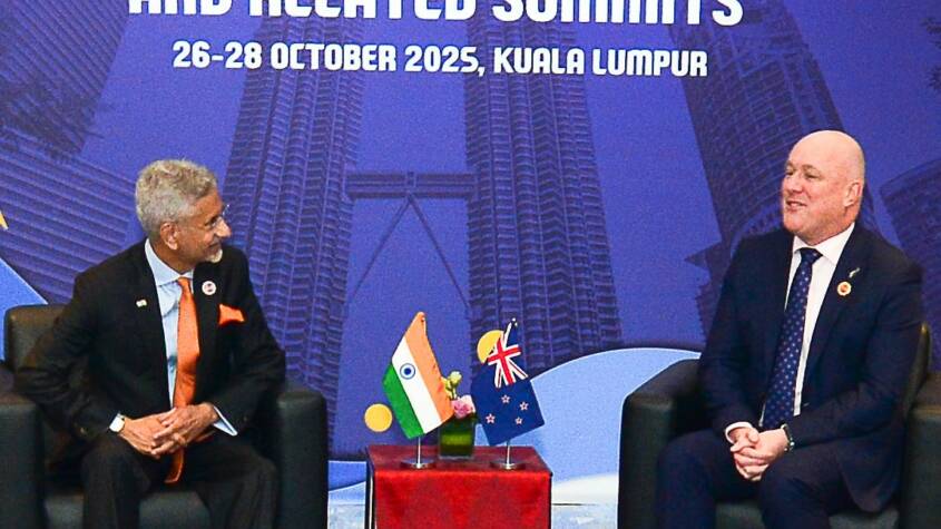 Kuala Lumpur, Oct 2025 : External Affairs Minister (EAM) S. Jaishankar met New Zealand Prime Minister Christopher Luxon on Monday on the sidelines of the ASEAN and East Asia Summits in Kuala Lumpur, reaffirming both nations’ commitment to a free, open, and secure Indo-Pacific region.