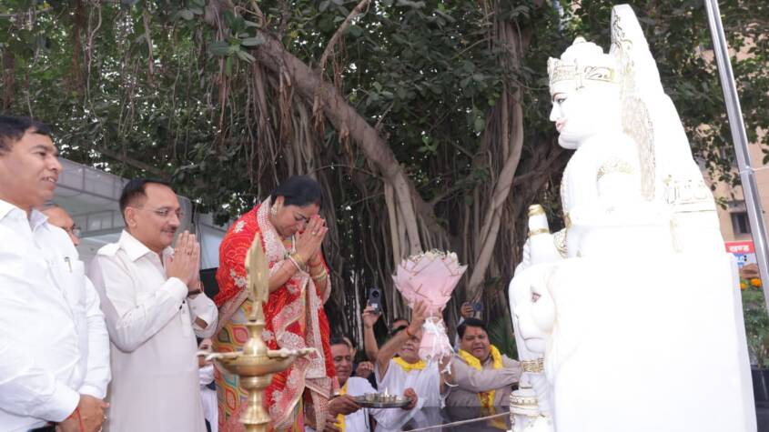 New Delhi, Oct 2025 : Delhi Chief Minister Rekha Gupta attended a special programme in the Mangolpuri constituency, where she inaugurated the newly named Maharshi Durbalnath Dham Centre and unveiled the statue of Maharaja Agrasen. She said that while Sant Durbalnath spread the message of unity and humanity, Maharaja Agrasen dedicated his life to service and social harmony. Inspired by their ideals, the Mangolpuri region is moving forward on the path of progress today.