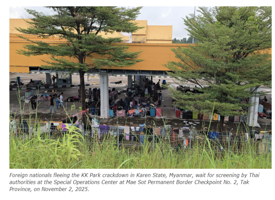 The BGF, led by Saw Chit Thu and aligned with Myanmar’s junta, has escalated its offensive on KK Park from once-daily strikes to multiple bombing rounds each day. A major series of explosions on October 29 damaged several office buildings and sent plumes of smoke drifting into Thailand’s Tak Province. Subsequent junta raids resulted in the detention of more than 2,000 individuals and the seizure of communication hardware, including Starlink terminals—hundreds of which were reportedly installed across the compound’s rooftops and believed to have been smuggled in for high-speed scam operations.