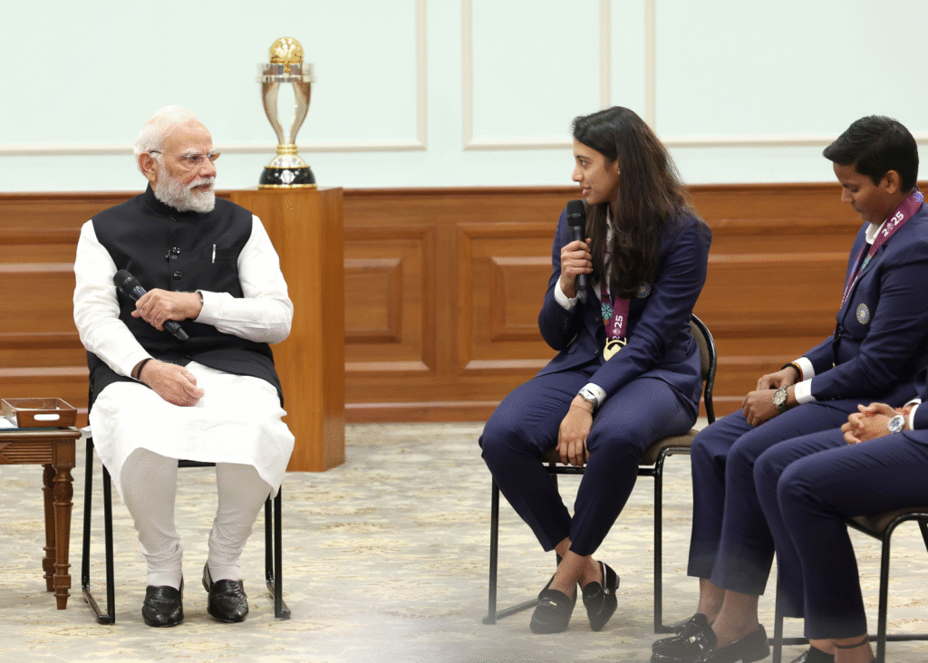 Vice-captain Smriti Mandhana said the Prime Minister’s encouragement over the years had motivated the team immensely. She also remarked that girls in India were excelling in every field today, crediting PM Modi’s initiatives for creating a more supportive environment for women across sectors.