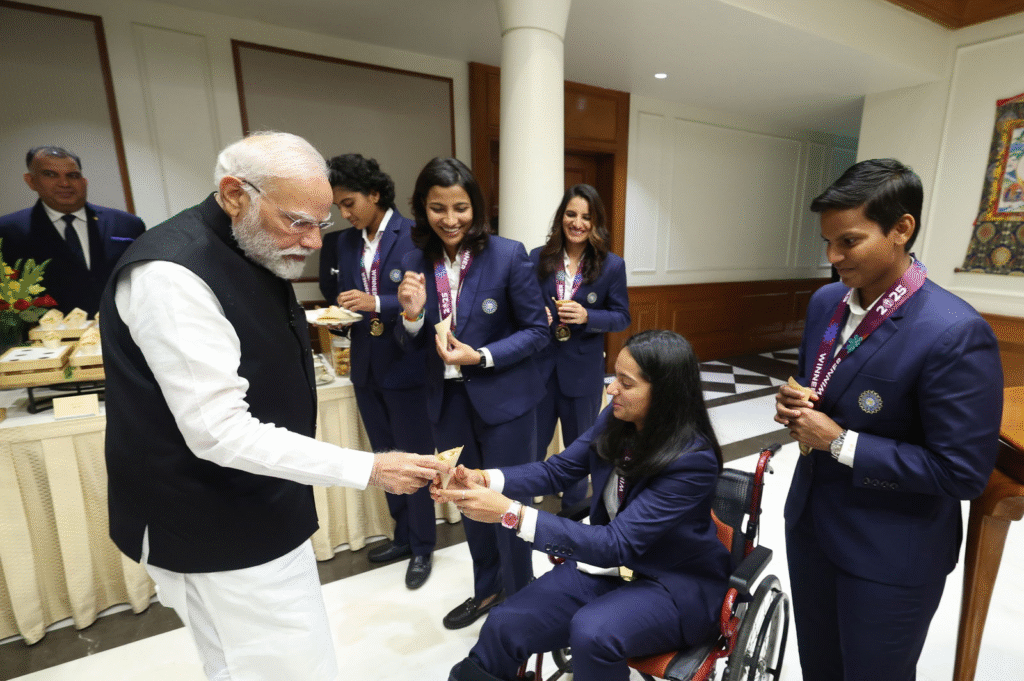 The Prime Minister encouraged the players to promote the message of Fit India, especially among young girls across the country. He expressed concern over rising obesity levels and urged the team to visit schools, interact with children, and inspire them to adopt active, healthier lifestyles.