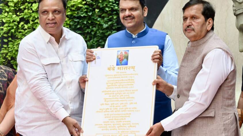 A special programme of collective singing of Vande Mataram was organized at Mantralaya by the Department of Skill, Employment, Entrepreneurship and Innovation, along with the Cultural Affairs Department, marking 150 years of the iconic song. Chief Minister Fadnavis was present for the occasion. Cultural Affairs and IT Minister Ashish Shelar, Skill Development Minister Mangal Prabhat Lodha, Chief Secretary Rajesh Kumar, Padma Shri Padmaja Phenany-Joglekar, along with senior bureaucrats and staff members of Mantralaya, were also present.