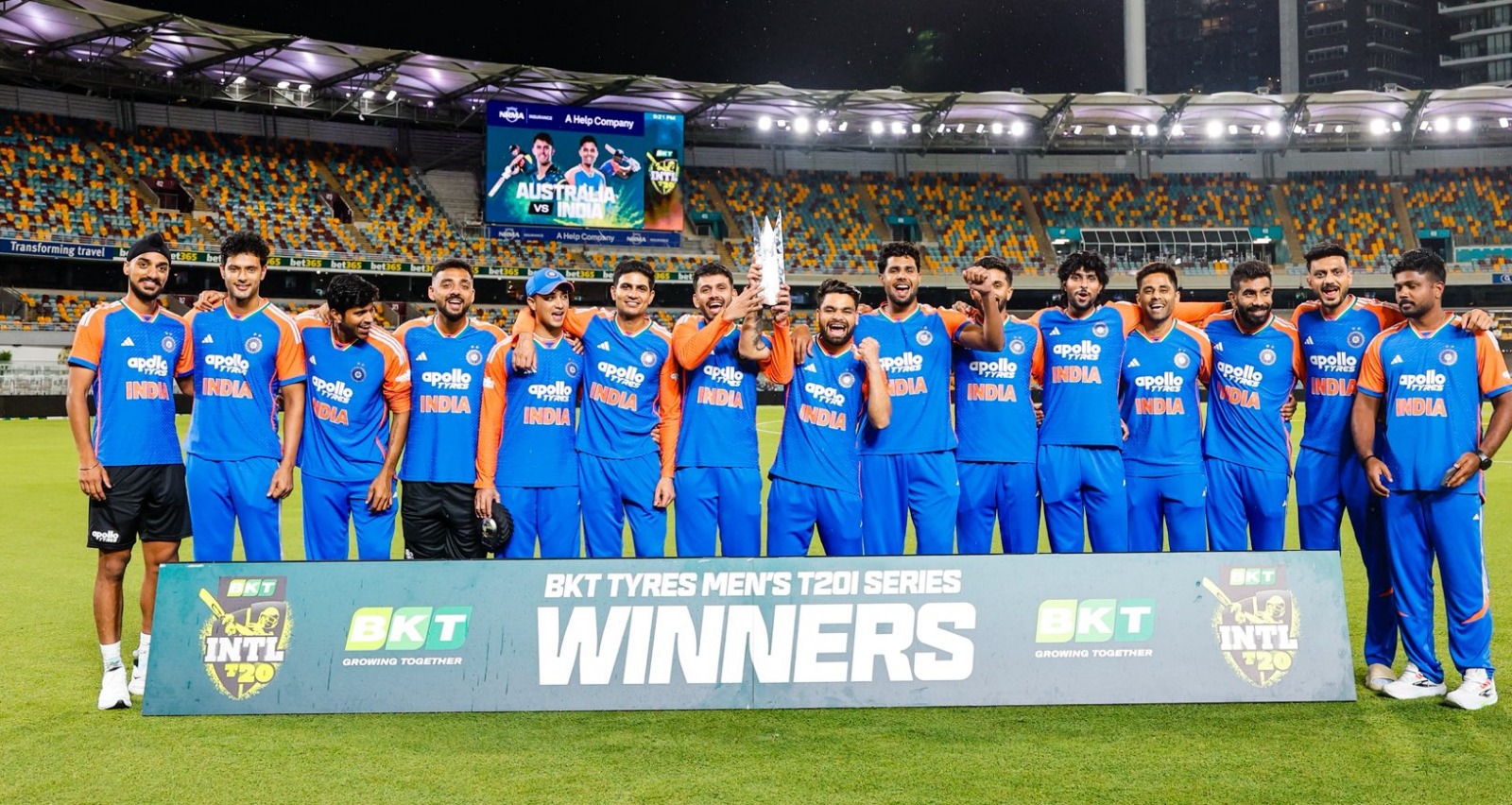 Brisbane, Nov 2025 : India’s T20I captain Suryakumar Yadav mixed humour with pride after guiding his team to a 2–1 series victory over Australia, joking that it felt good to “finally hold a trophy” following the recent Asia Cup 2025 trophy standoff. His remarks came after the fifth and final T20I at The Gabba was washed out due to persistent rain, officially sealing India’s seventh consecutive T20I series win.
