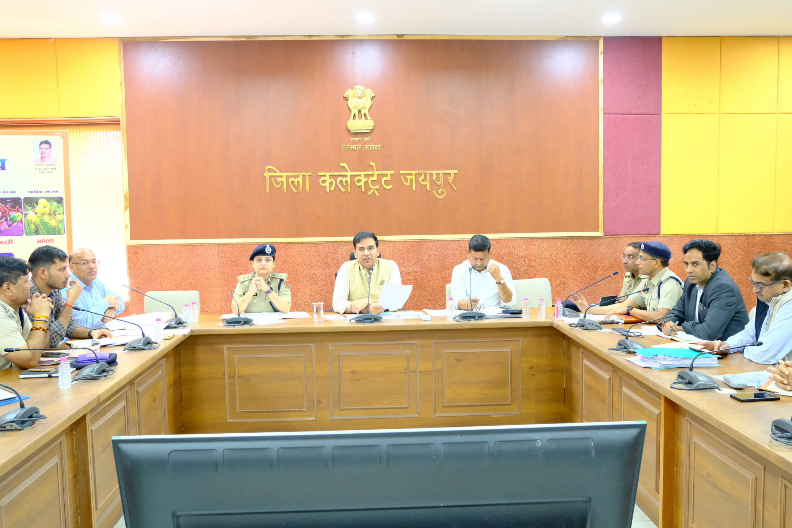 Those present included Jaipur Rural Superintendent of Police Rashi Dogra Dudi, Police Commissioner (Traffic) Sumit Mehra, Additional District Collector Yugantar Sharma, and officers from police, traffic, municipal corporation, JDA, NHAI, medical and health, transport, PWD, and Rajasthan State Road Transport Corporation.