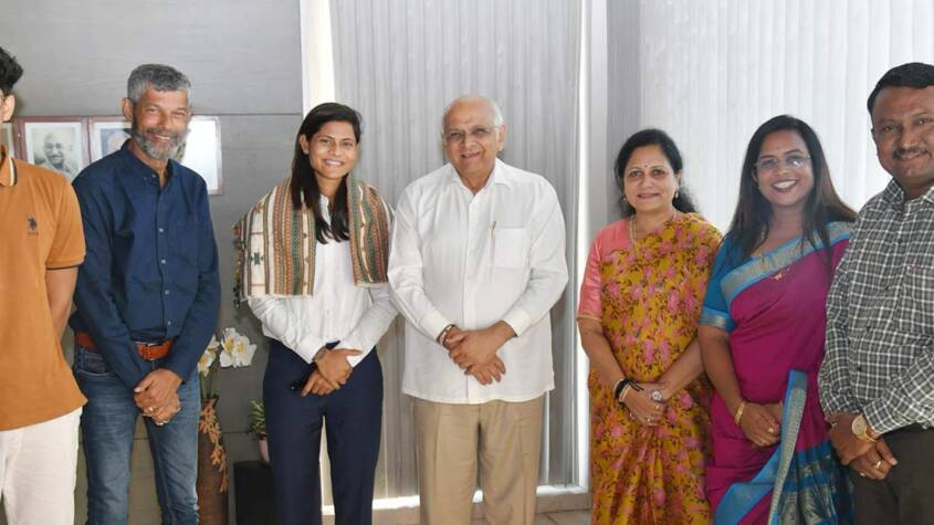 Chief Minister Shri Bhupendra Patel felicitated Ms Radha Yadav with a shawl. He congratulated the Indian women’s cricket team for their remarkable performance in the Women’s World Cup and conveyed his best wishes for their continued success and bright future.