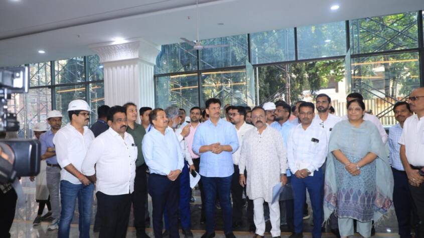 Minister Abitkar inspected various sections of the main hospital building — including the Outpatient Department (OPD), Accident and Emergency Unit, MRI and CT Scan departments, Sonography, X-Ray, Mammography, Inpatient Ward, Maternity Ward, Modular Operation Theatres, Helipad, Parking Structure, Nursing Training Center, and Residential Quarters for staff.