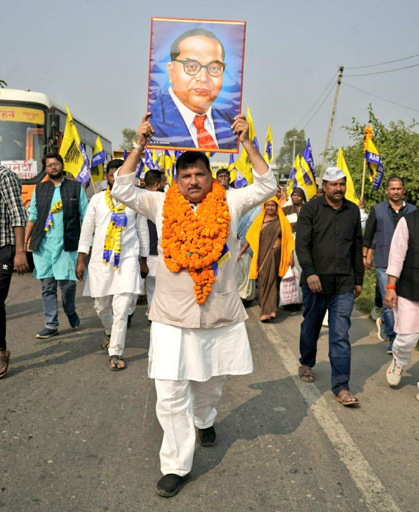 Lucknow/Sultanpur, Nov 2025 : On the fourth day of the Aam Aadmi Party’s “Provide Jobs – Provide Social Justice” padyatra against unemployment and injustice in Uttar Pradesh, thousands of people joined the march from Kurebhar to Katka. At every turn and every village, massive crowds made it evident that the people of the state now want change.