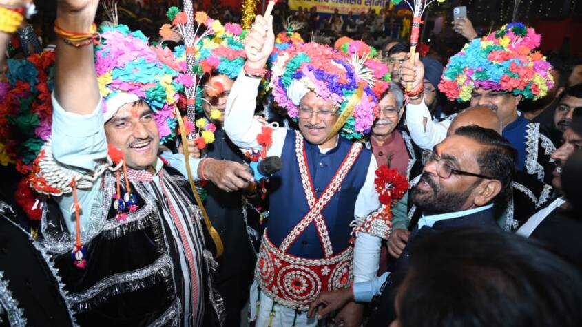 Chief Minister Shri Vishnudev Sai entered the gathering of Raut Nacha troupes dressed in traditional costume and danced with them to the rhythmic beats of drums and nagaras, encouraging the performers. Praising the captivating performances, he said that cultural heritage like Raut Nacha will continue to inspire future generations and keep Chhattisgarh’s traditions alive forever.