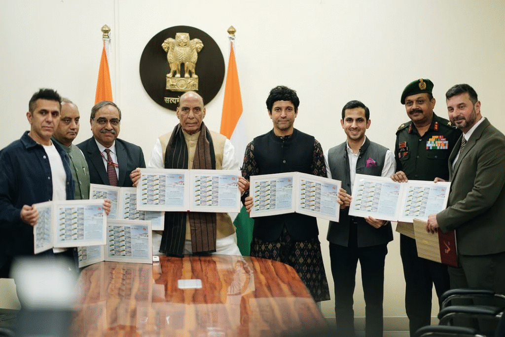 Nov 2025 : Farhan Akhtar’s upcoming war epic “120 Bahadur” is set to make history as the first-ever film to premiere across India’s defense theater network. According to Variety, the film will screen in more than 800 cinema halls dedicated to the nation’s military community when it releases on November 21.