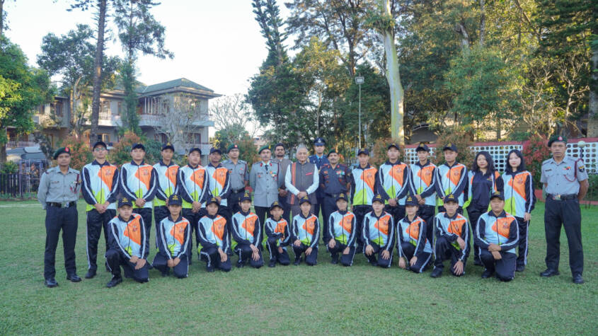 During the farewell programme held on the Raj Bhavan Circular Lawn, the Officer-in-Charge of the National Integration Tour briefed the gathering on the tour details. The Governor presented the NIT caps to the participants. Brigadier Puspendar Sorayan, DIG, HQ 23 Sector Assam Rifles, and other officers were also present during the ceremony.