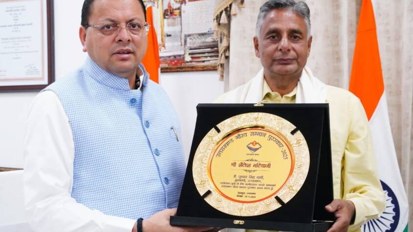 Chief Minister Pushkar Singh Dhami, in a simple and dignified ceremony held today at the Chief Minister’s Residence, presented the “Uttarakhand Gaurav Samman Award 2025” — conferred upon renowned Hindi litterateur the late Shri Shailesh Matiyani — to his son, Shri Rakesh Matiyani. This honour has been awarded in recognition of Shri Matiyani’s literary accomplishments, his invaluable contribution to Hindi short stories, and his role in giving a strong identity to Uttarakhand’s cultural heritage.