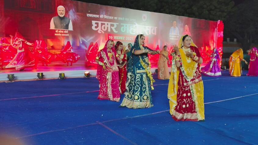 Jaipur, Nov 2025 : Following the directions of Deputy Chief Minister Diya Kumari, Ghoomar Festival 2025 was celebrated on Wednesday across all divisional headquarters of the state. At Ajmer’s Samrat Prithviraj Chauhan Government College, the festival was organised with grandeur, placing the pride of folk culture, women’s power, and Rajasthan’s invaluable dance heritage at its core.