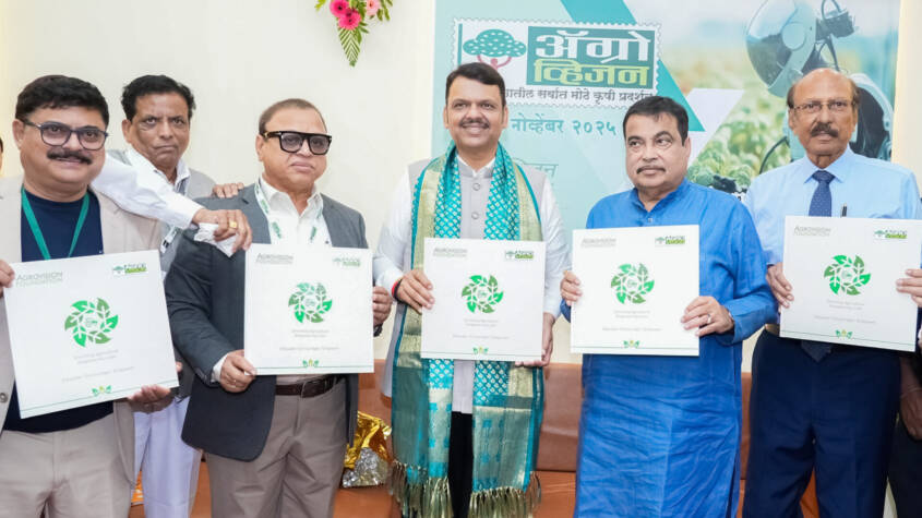 A brief programme was held at the office of the ‘Agro Vision’ agricultural exhibition, attended by Union Minister for Road Transport and Highways and founder of the exhibition, Nitin Gadkari; Trustee of Baramati Agricultural Development Trust, Prataprao Pawar; President of Agro Vision Foundation, Ravi Boratkar; and Chairman of the Agro Vision Advisory Council, Dr. C.D. Mayee. This year marks the 16th edition of Agro Vision.